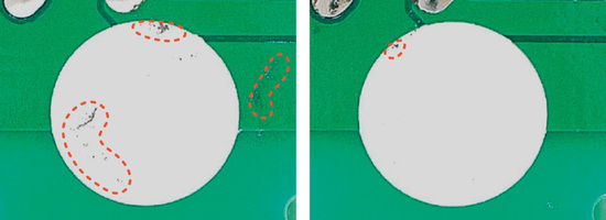 When using Sn-Bi solder, NS-F902 effectively suppresses the occurrence of solder residue adhesion.